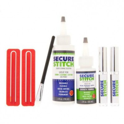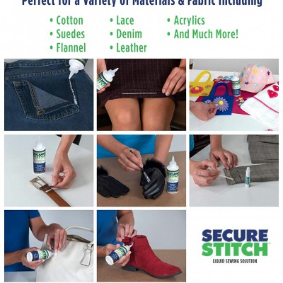 Solutia de cusut lichida Secure Stitch repara rupturile si gaurile intr-o clipita, si veti putea imbraca hainele rapid si usor. Solutia de cusut lichida Secure Stitch este un agent de fuziune ultra-flexibil care leaga fibrele impreuna si se usuca translucid!